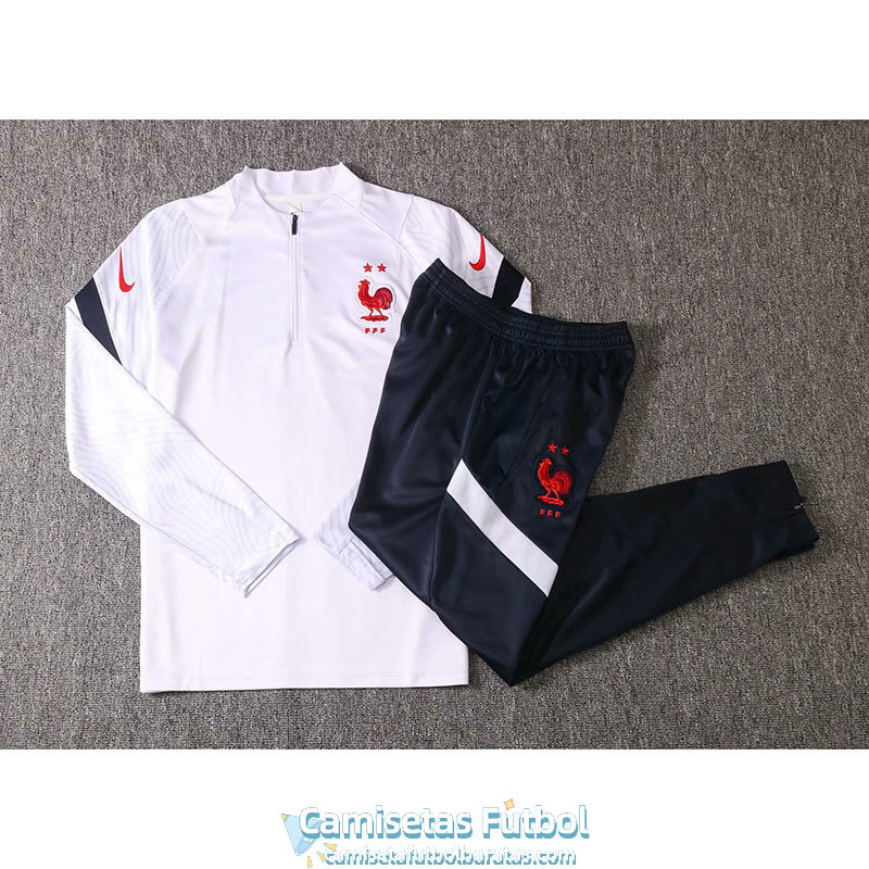 Francia Sudadera De Entrenamiento White + Pantalon 2020-2021 - Camiseta Francia baratas